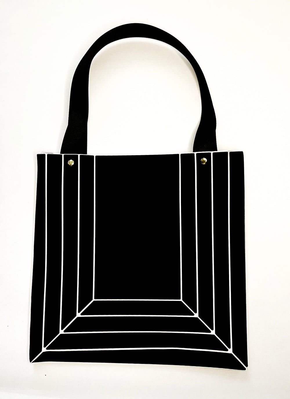 תיק יוקרתי ואלגנטי בעיצוב ייחודי מבית המעצבת. התיק משלב הדפס גאומטרי מודרני בגווני שחור ולבן, המעניק לו מראה מתוחכם שמתאים לכל אירוע.